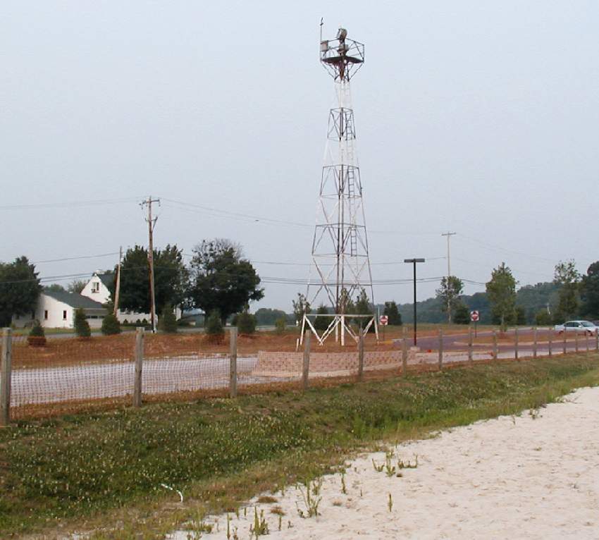 In an ironic twist, the rotating beacon light tower still remains all by itself - it now stands in the middle of a parking lot.