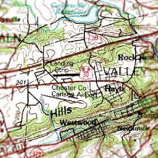 Note the proximity of the Chester County Carlson Airport, right across the road to the south.