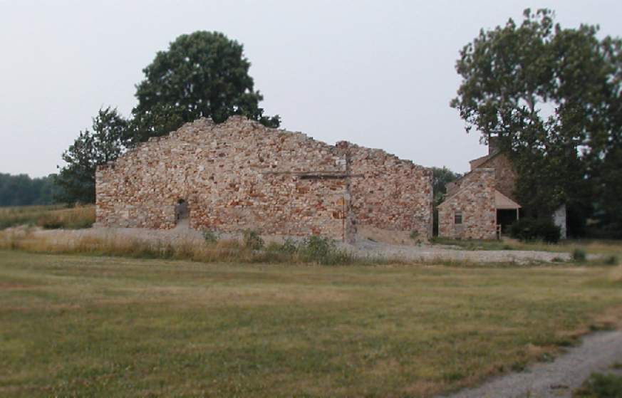 A 2001 photo by Jay Cooke of the remains of the barn that was used as the repair shop at Stoltzfus Field.