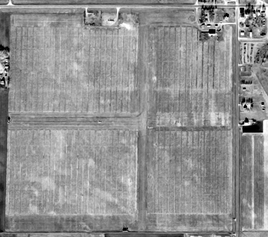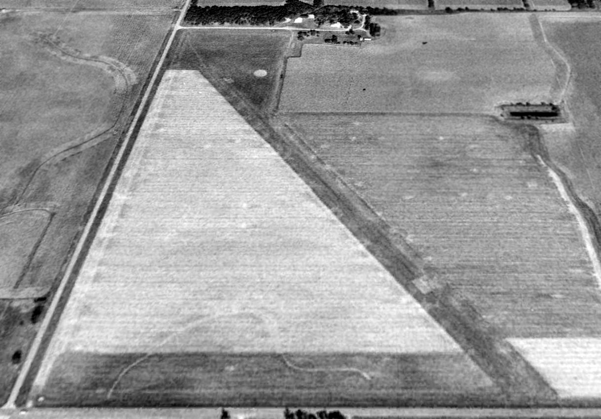as a 2014 aerial view (courtesy of Lee Corbin) showed the property had been plowed up & reused for farming, with no trace remaining of the runways.