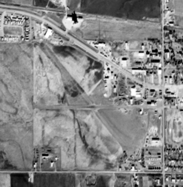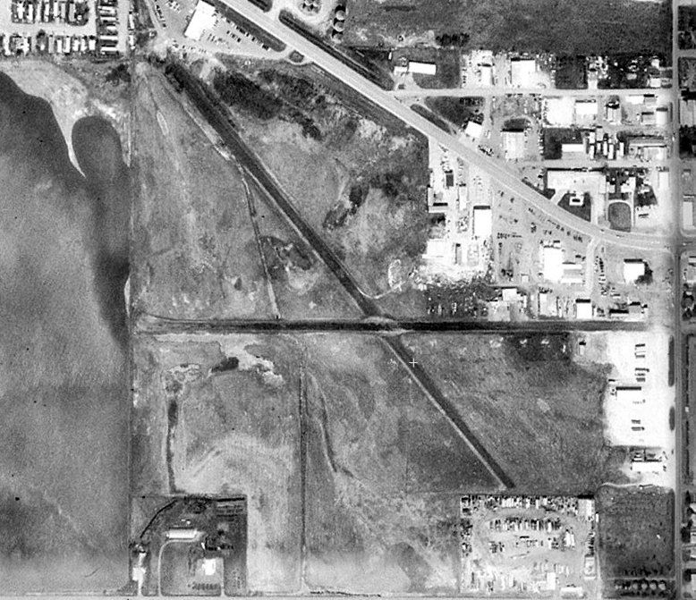 A 1956 aerial photo did not show any recognizable trace of the original Lake Preston Airport.