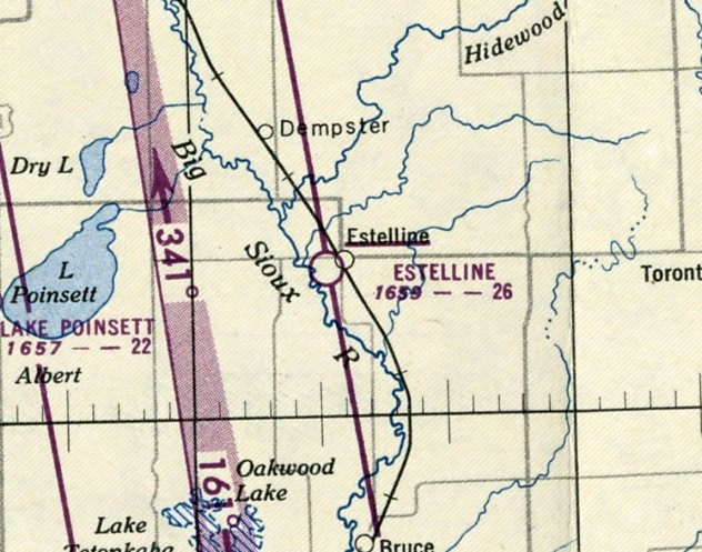 The last depiction which has been located of Estelline Municipal Airport was on the March 1971 Aberdeen Sectional Chart.