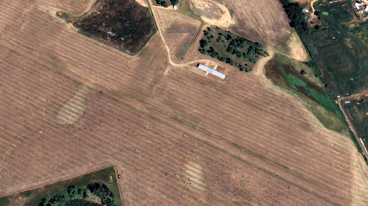 A 2023 aerial photo did not show any recognizable trace of the original Lake Preston Airport.