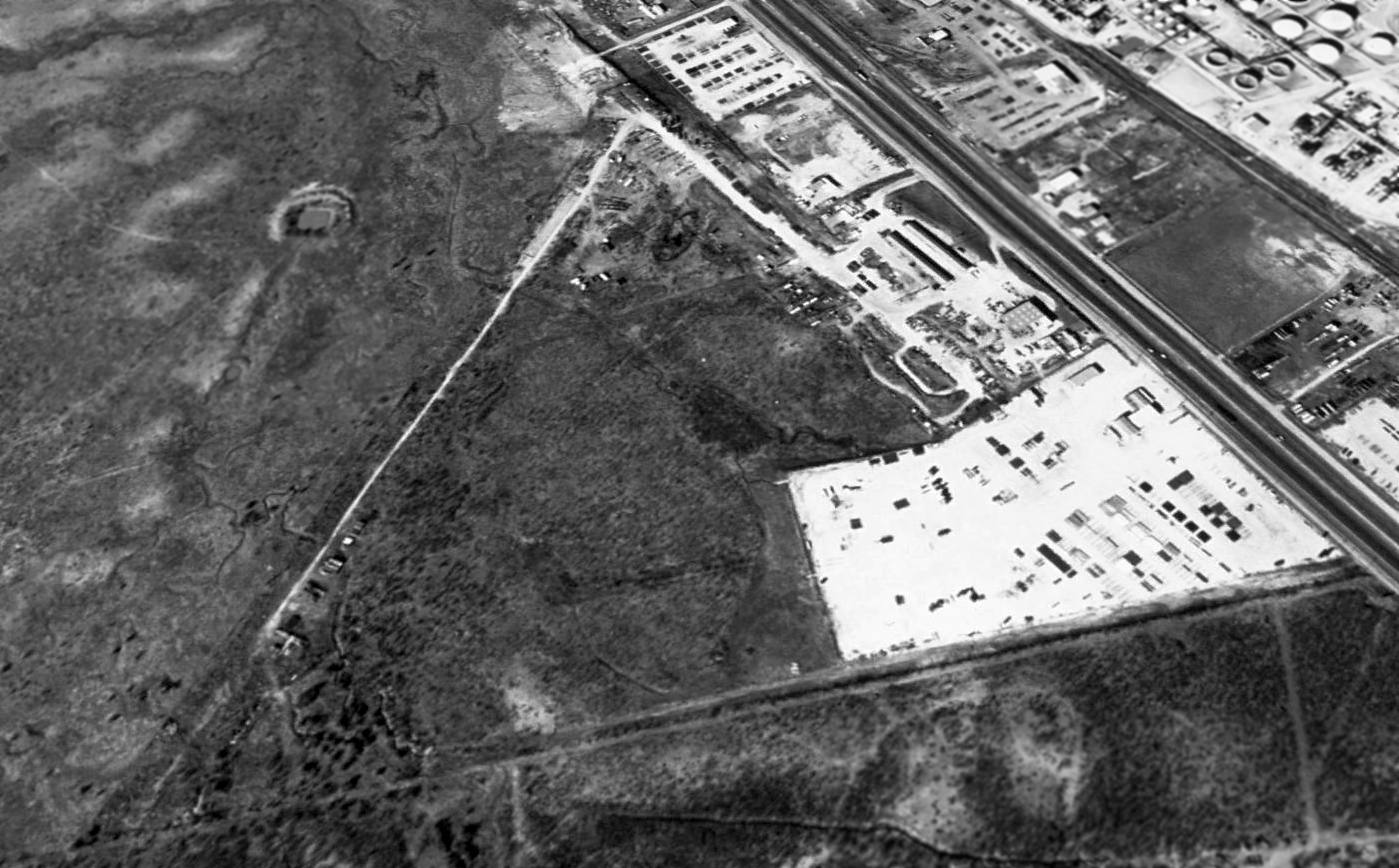 and way in the background right at the end of the hangars you can see the stacks of the Pride Refinery across the highway from Butterfield.