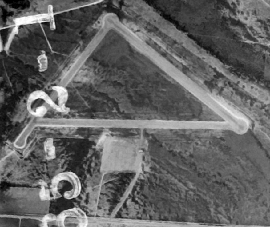 It consisted of 3 paved runways arranged in a triangle, with a paved ramp & one small building on the south side.