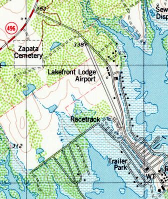 Lakefront Lodge Airport, as depicted on the January 1972 Brownsville Sectional Chart (courtesy of Ron Plante).