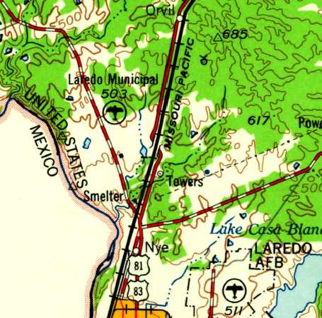 “Laredo AFB Aux Field #2”, as depicted on the 1956 USGS topo map.