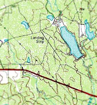 The 1985 USGS topo map depicted a single northwest/southeast runway, but labeled simply as “Landing Strip”.