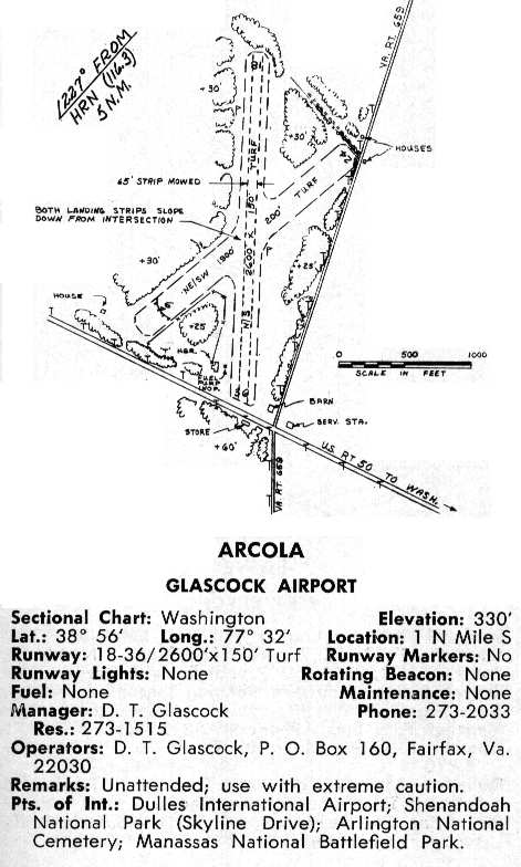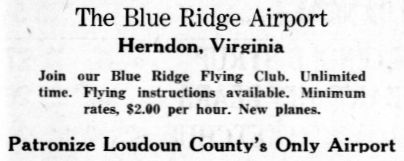 The private airfield of Ross Lipscomb (an early Loudoun County pilot) was located just north of the town of Leesburg.
