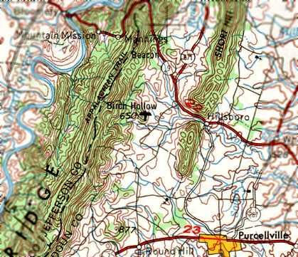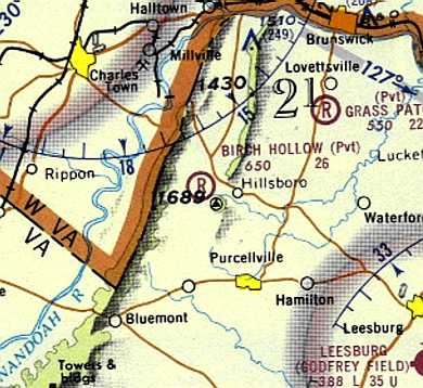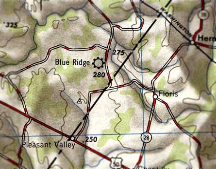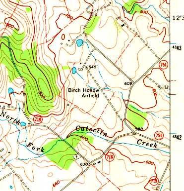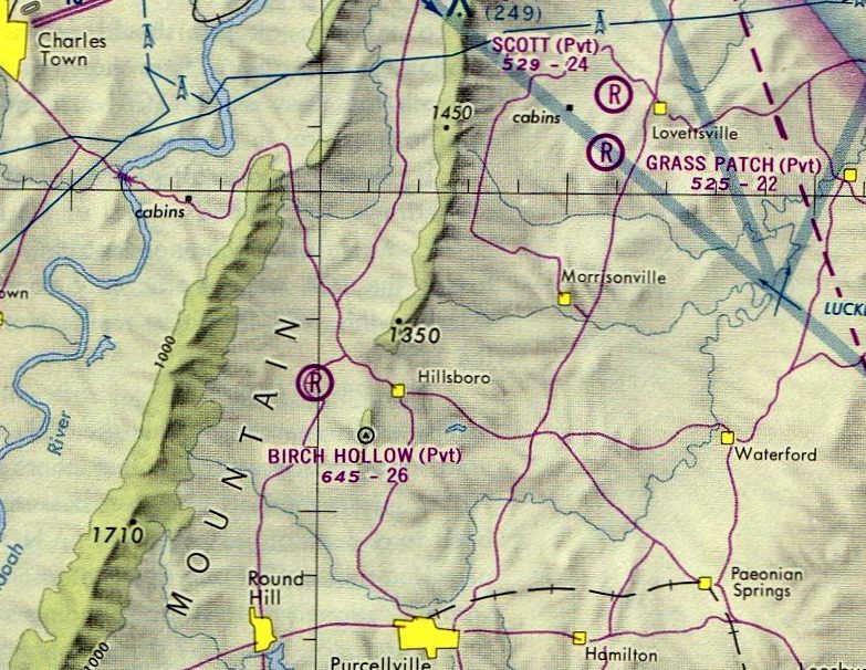 The 2 grass runways of Blue Ridge Airport were still clear on a 1957 aerial view (from the Loudoun County GIS system, courtesy of Jim Askegren),