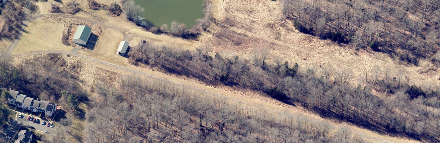 with a taxiway leading to several buildings on the north side of the field.