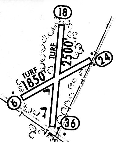 It depicted the field as having 2 grass runways in an “X”-shape, with a few small buildings along the road along the east side of the field,