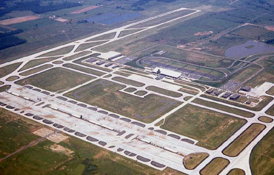 A 1974 aerial view depicted a single aircraft on the field.