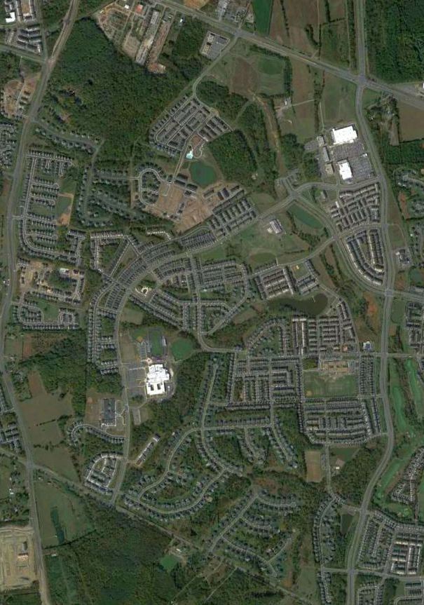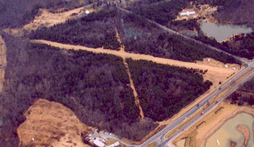 A 1995 aerial photo showed the eastern half of Lipscomb Airfield had had been covered by the Raspberry Falls housing development & golf course,