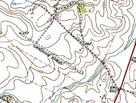 The single runway of the Lipscomb Airfield was labeled simply as “Landing Strip” on the 1981 USGS topo map.