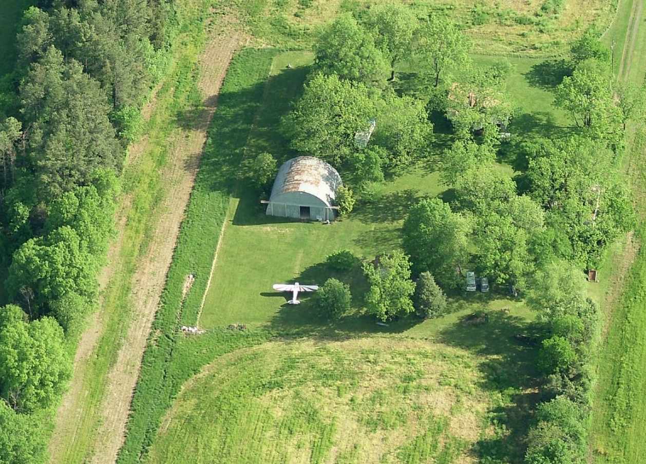 A circa 2010 aerial view looking north showed the Valley View Airport Quonset hut hangar,