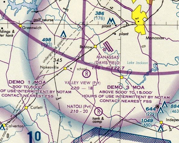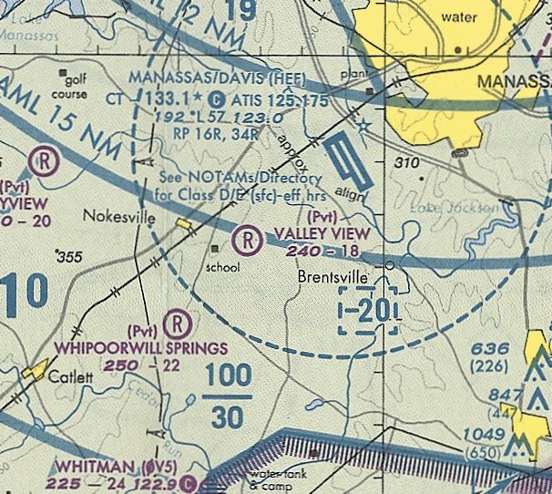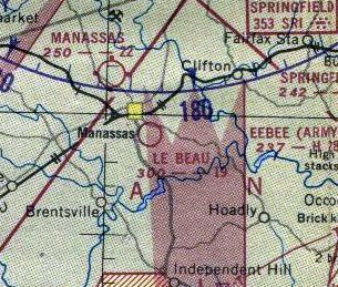 The original Manassas Airport was described on the 1964 Washington Local Aeronautical Chart (courtesy of Mike Keefe)