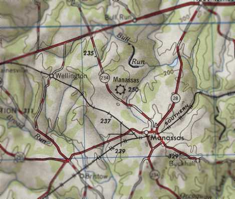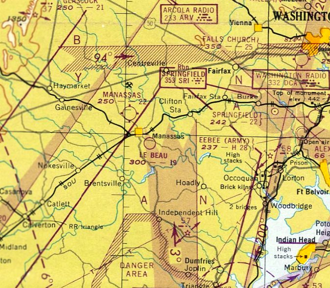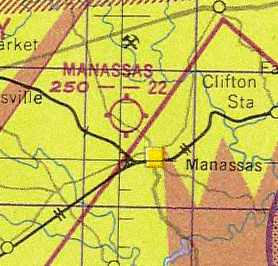 It depicted Manassass Airport as an auxiliary airfield located northwest of the town.