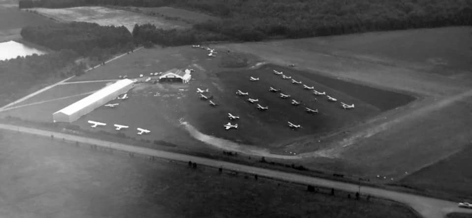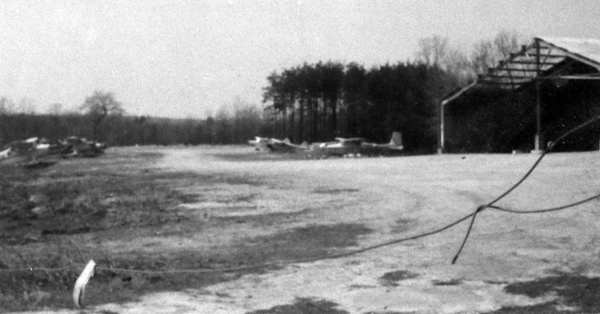 A 1964 aerial view showed a total of 10 light aircraft parked outside at the original Manassass Airport.