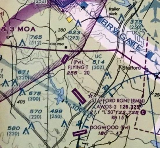 It depicted Flying T as a private airfield with a single paved 2,000' northeast/southwest runway.