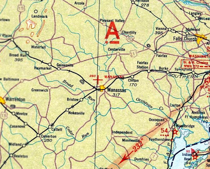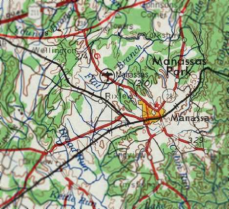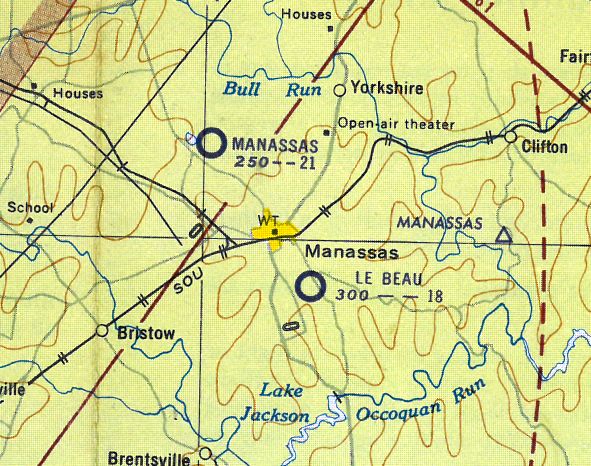 only the new Manassas Airport (southwest of the town) was depicted - the original Manassas Airport was no longer depicted.