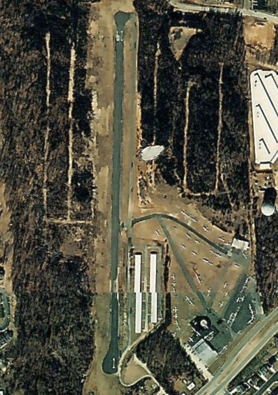 with the row of T-hangars having just been removed, but the main hangar still remained, as well as the runways.
