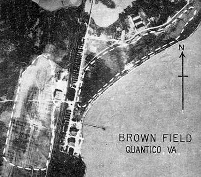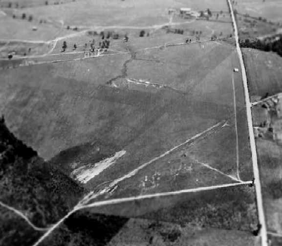 A 1936 aerial view looking southeast at the original Manassass Municipal Airport.