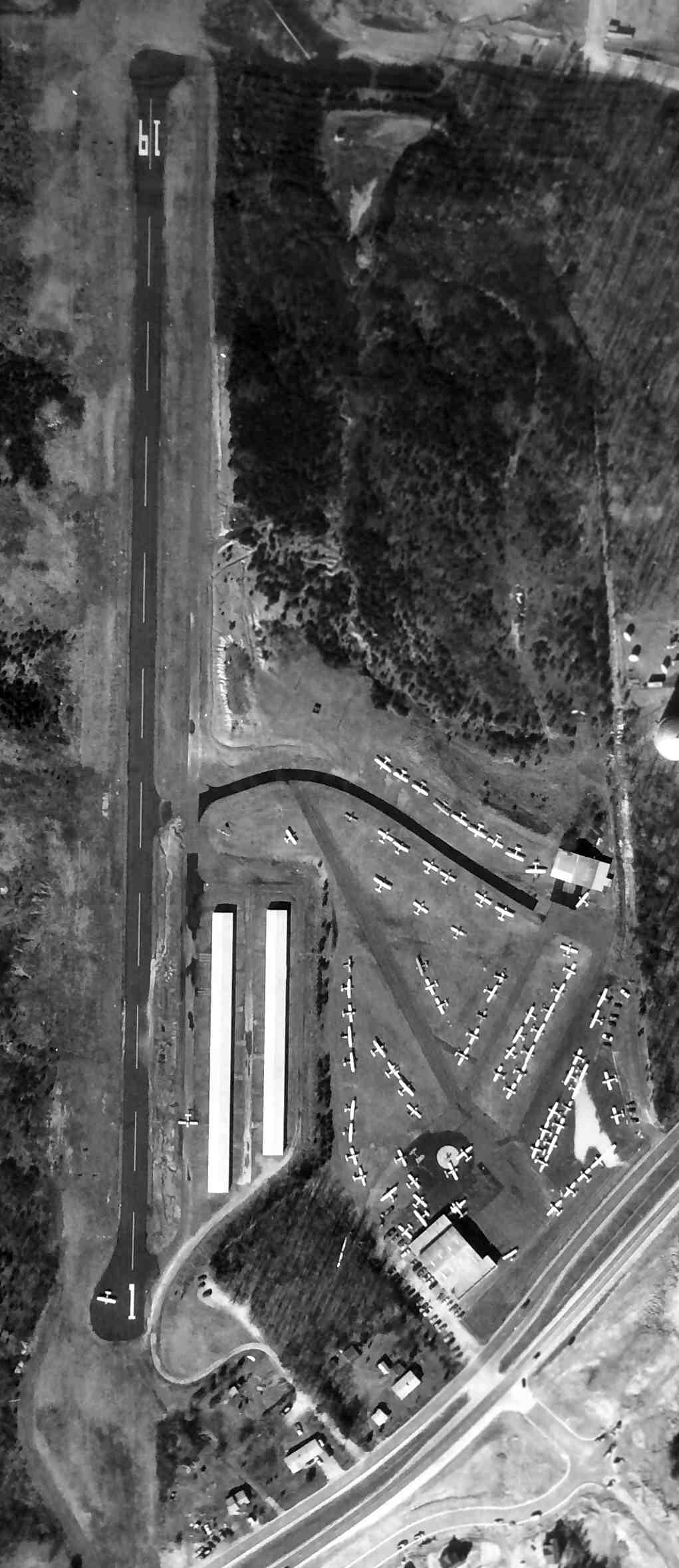 A 1961 aerial view looking north (from the collection of Bill Marshall) depicted the original Manassas Airport