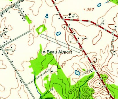 The 1956 USGS topo map depicted Le Beau Airport as having a northwest/southeast runway.