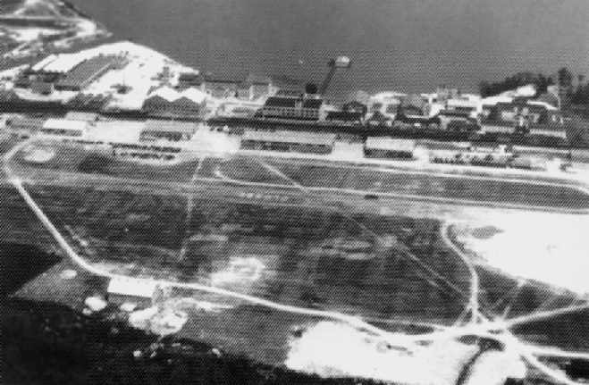 A circa 1942-45 aerial view looking east at Manassas Municipal Airport