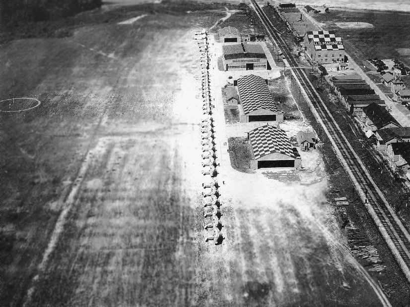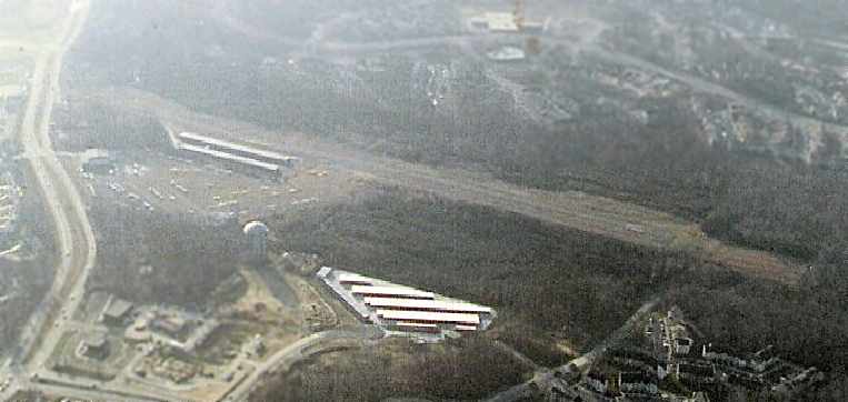 and the L-shaped shopping center at the left is where the hangar stood.”