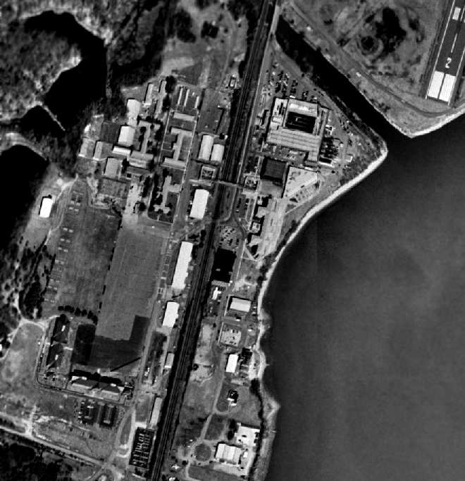 A 2003 aerial photo showed the aircraft had been moved to the south side of the hangar,