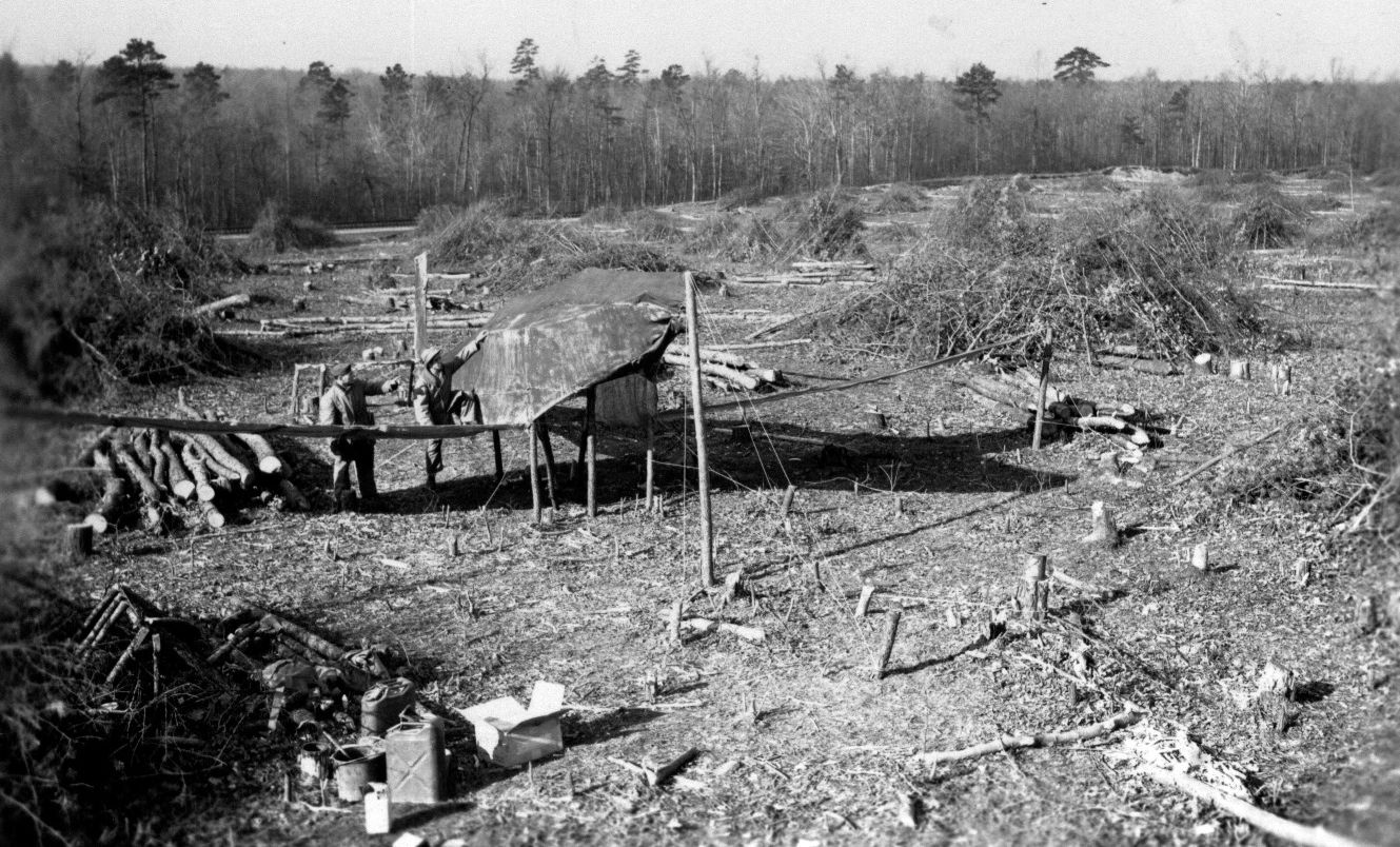 “In September 1943 the 1896th Engineer Aviation Battalion moved from Byrd Field into camouflaged plywood Quonset huts at the decoy field.