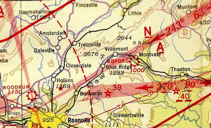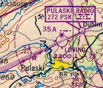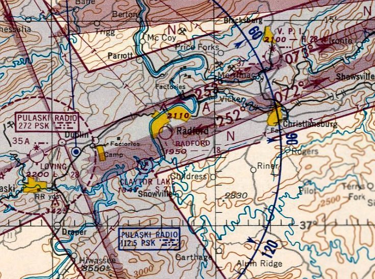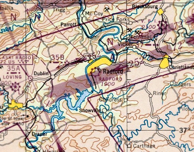The last aeronautical chart depiction which has been located of Radford Airport was on the January 1952 Winston-Salem Sectional Chart.