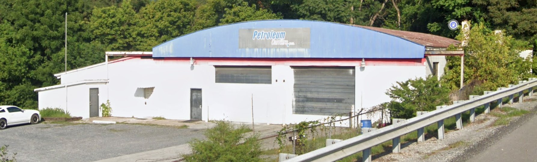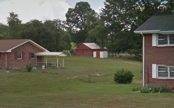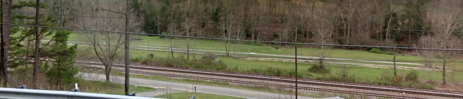 A 2024 photo looking southwest along the original Richlands Municipal Airport's former Runway 26, a portion of which is reused as Clinch River Road.
