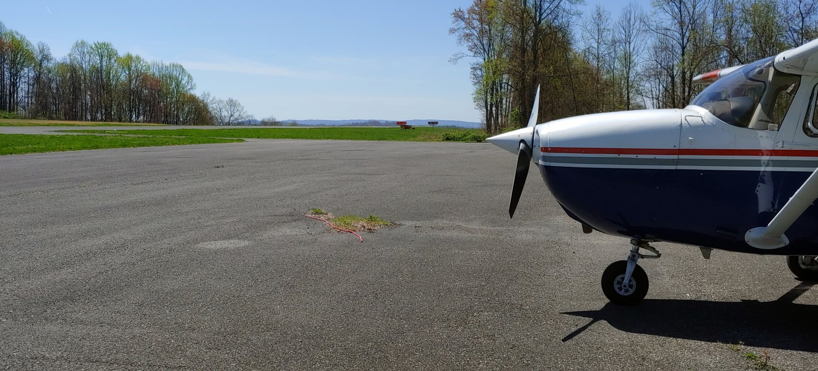 A 4/16/19 photo by Tekang Wang looking northeast toward the departure end of Grundy Airport's Runway 4.