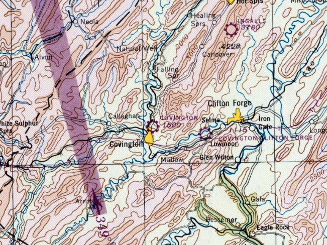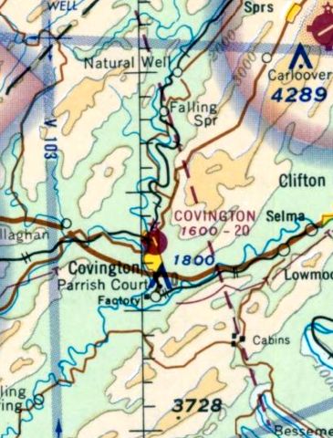 The last aeronautical chart depiction which has been located of Covington Airport was on the 1969 Winston-Salem Sectional Chart (courtesy of Jon Raines).