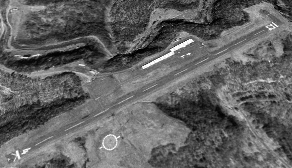 The lack of flat terrain in the mountainous region made it difficult to find a location suitable to sustain a proper airport facility.”