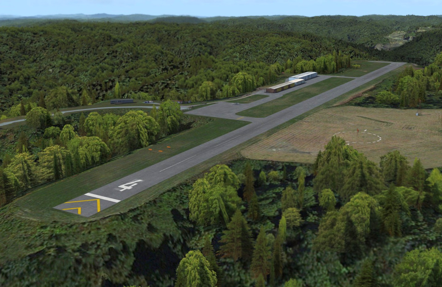 A flight simulation scenery depiction looking north at Grundy Municipal Airport.