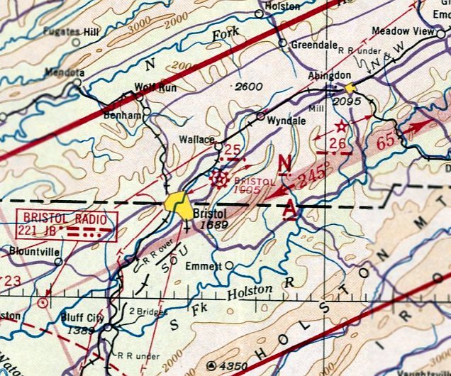 The last aeronautical chart depiction which has been located of Bristol Airport was on the January 1942 Winston-Salem Sectional Chart.