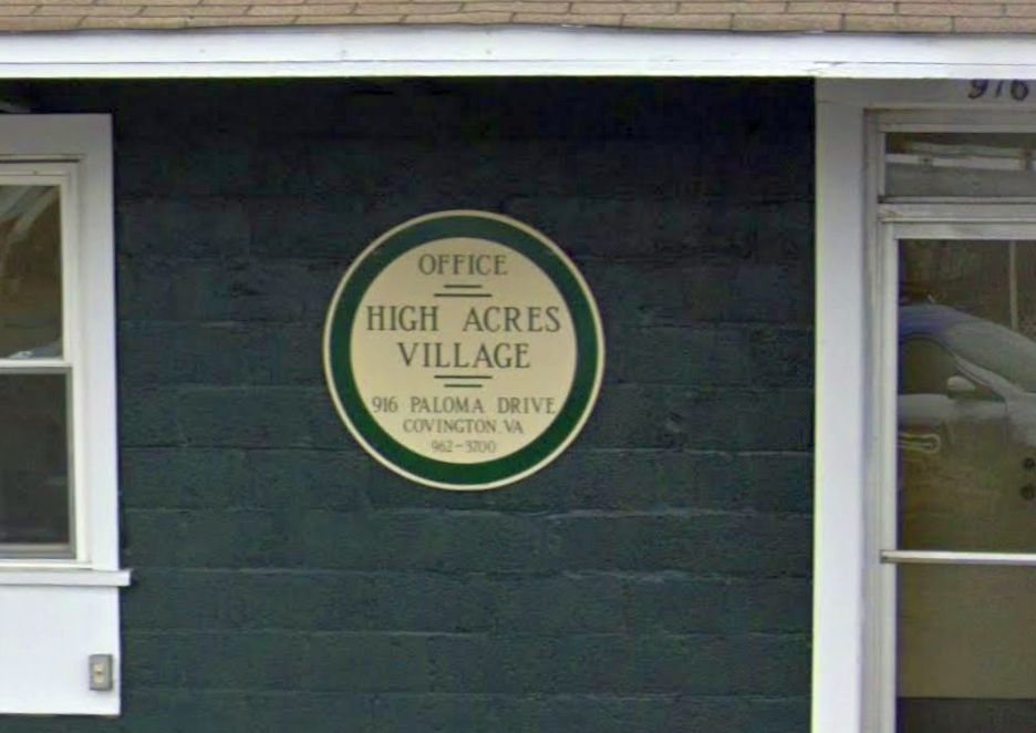 A 2024 photo of the sign for the High Acres Village office, which occupies the former Covington Airport office.