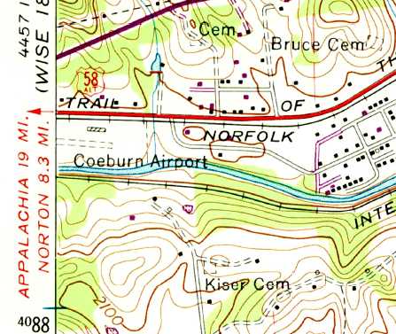 The paved runway extended further to the east, being carried by a bridge across the Clinch River.
