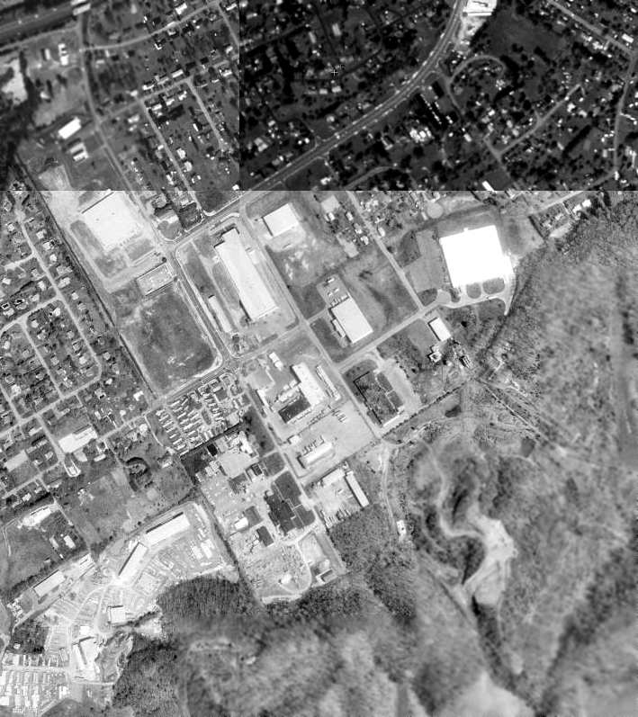 showing the bridge (center-left of photo) which carried the runway over the Clinch River.