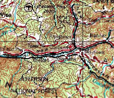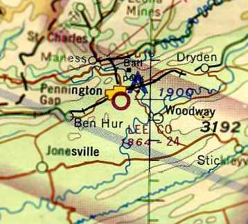 37.09, -81.836 (Southwest of Roanoke, VA)