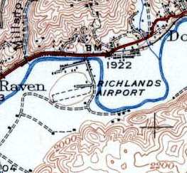 the original Richlands Airport "was a grass strip located just across the Clinch River, to the west of the [current paved runway] airport.
