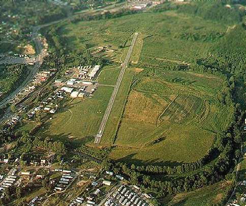 A 1981 aerial photo by Frank White looking east at Richlands Municipal Airport, while the airport was still open.
