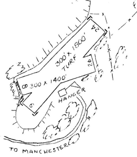 A 1934 listing (courtesy of Tom Hildreth) described “Manchester – Equinox Airport” as a commercial airport, with one 1,600' runway, and with “Manchester Airport” marked on the field.