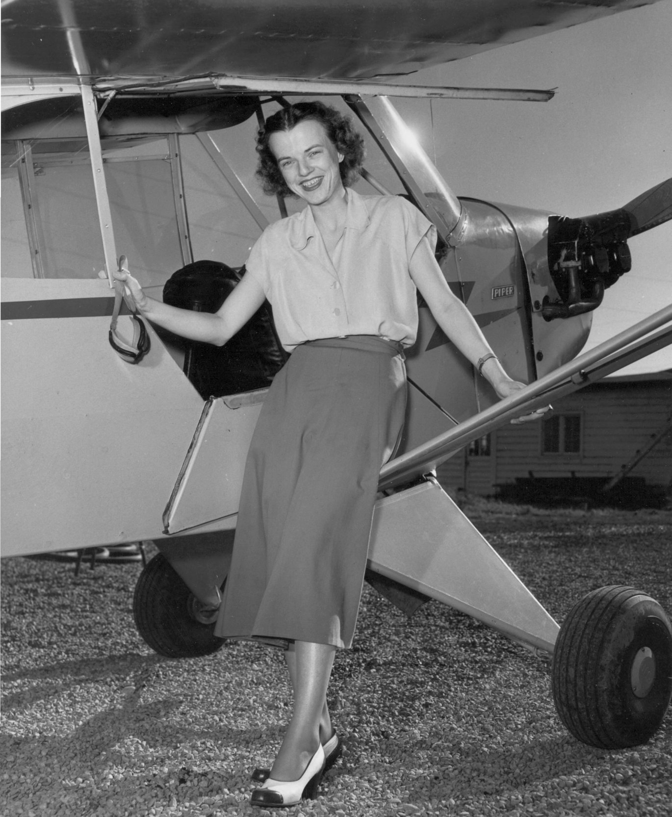 A 6/1/48 photo by Paul Lehman of Nancy Savidge in front of a Piper J-3 Cub at Ben Barry's Sky Harbor (courtesy of Lee Corbin).