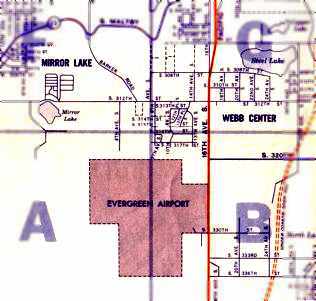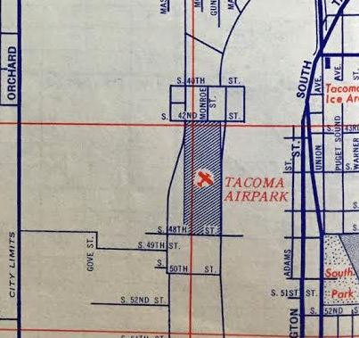 South Tacoma Airport was labeled “Tacoma Aero Club” on a 1958 street map (courtesy of Kevin Walsh),