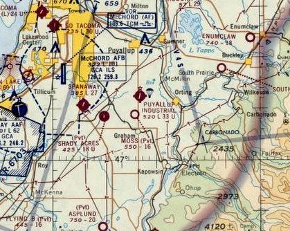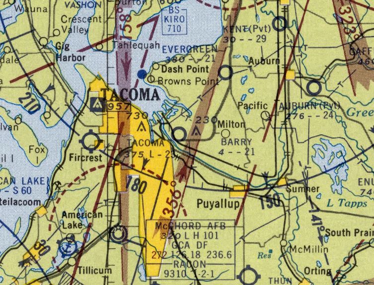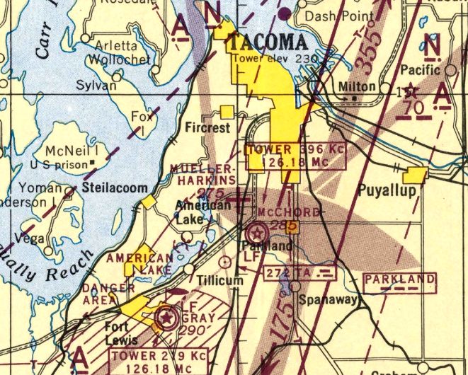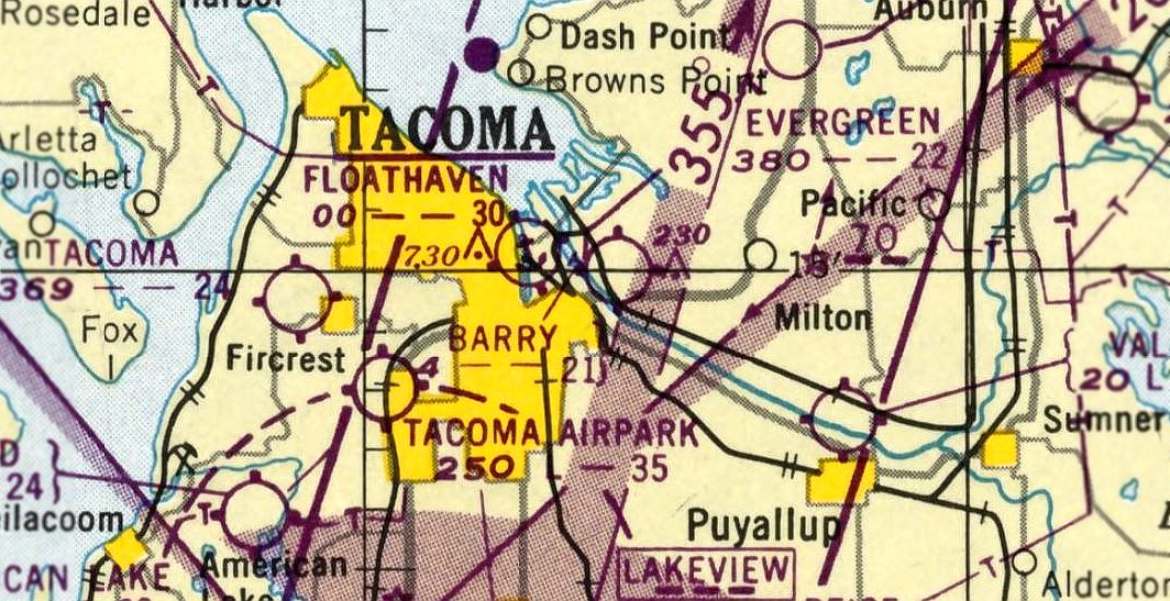 The earliest aeronautical chart depiction which has been located of Tacoma Airpark was on the April 1946 Seattle Sectional Chart,